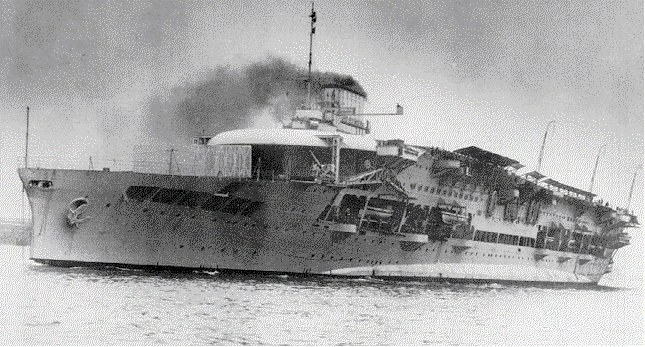Glorious was paid off after the end of the war, but was rebuilt as an aircraft carrier at Rosyth from July 10th 1922 to April 10th 1926. For her (and her sister ships') conversions, the ships had their main turrets and superstructure removed and a hanger deck, full-length flight deck and control island added in their place. They also had anti-torpedo bulges added to improve stability, and an impressive anti-aircraft armament for the time.