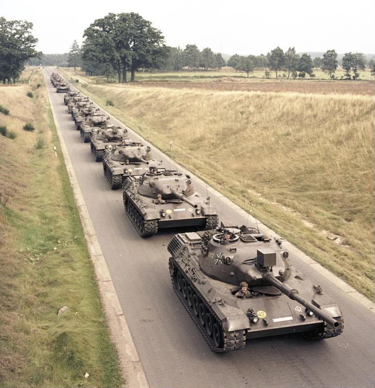 A line of Leopard 1 main battle tanks from 12. Panzer-Regiment in 1965.