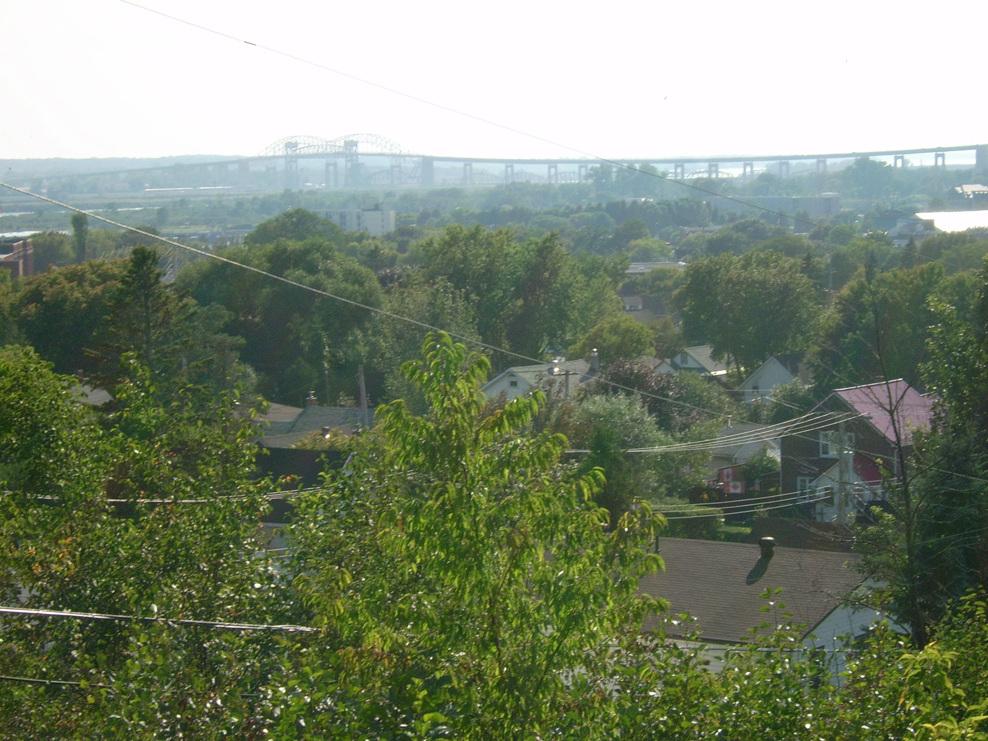 To the south, across the river, is the Union of American People's Republics and the town of Sault Ste. Marie, Great Lakes. Shipping traffic in the Great Lakes system bypasses the Saint Mary's Rapids via one of two pairs of locks - the Soo Locks on the American side or the Sault Ste. Marie Canals, the world's busiest canal in terms of tonnage, on the Canadian side.